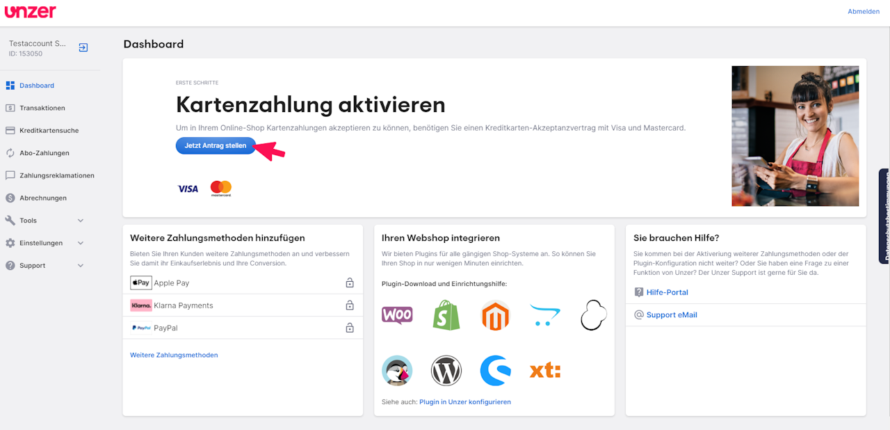 To be able to accept card payments in your online shop, you need a credit card acceptance contract with Visa and Mastercard.