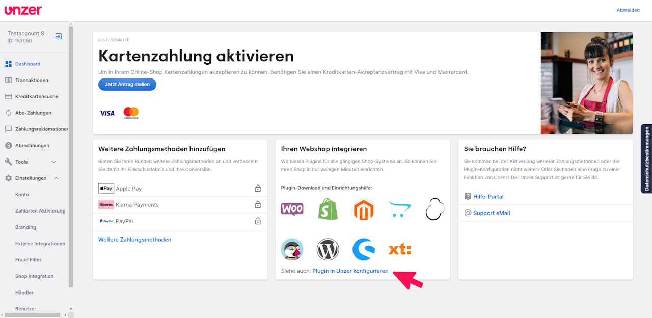 To integrate Unzer Direct with your shop system you will need certain information that can be found in Unzer Direct Manager under Settings > Integration.